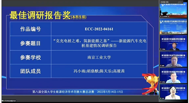 由公司王瑜老师指导的作品《“克充电桩之难,铸新能源之基”—新能源汽车充电桩基建情况调研报告》(团队成员包括经济管理公司19级本科生冯小雨、胡鼎猷和tyc122cc太阳成集团19级本科生陈天乐、高筱茜)荣获全国一等奖,并获得本科生组唯一的最佳调研报告奖,调研内容和方向获得了评委的高度肯定。
