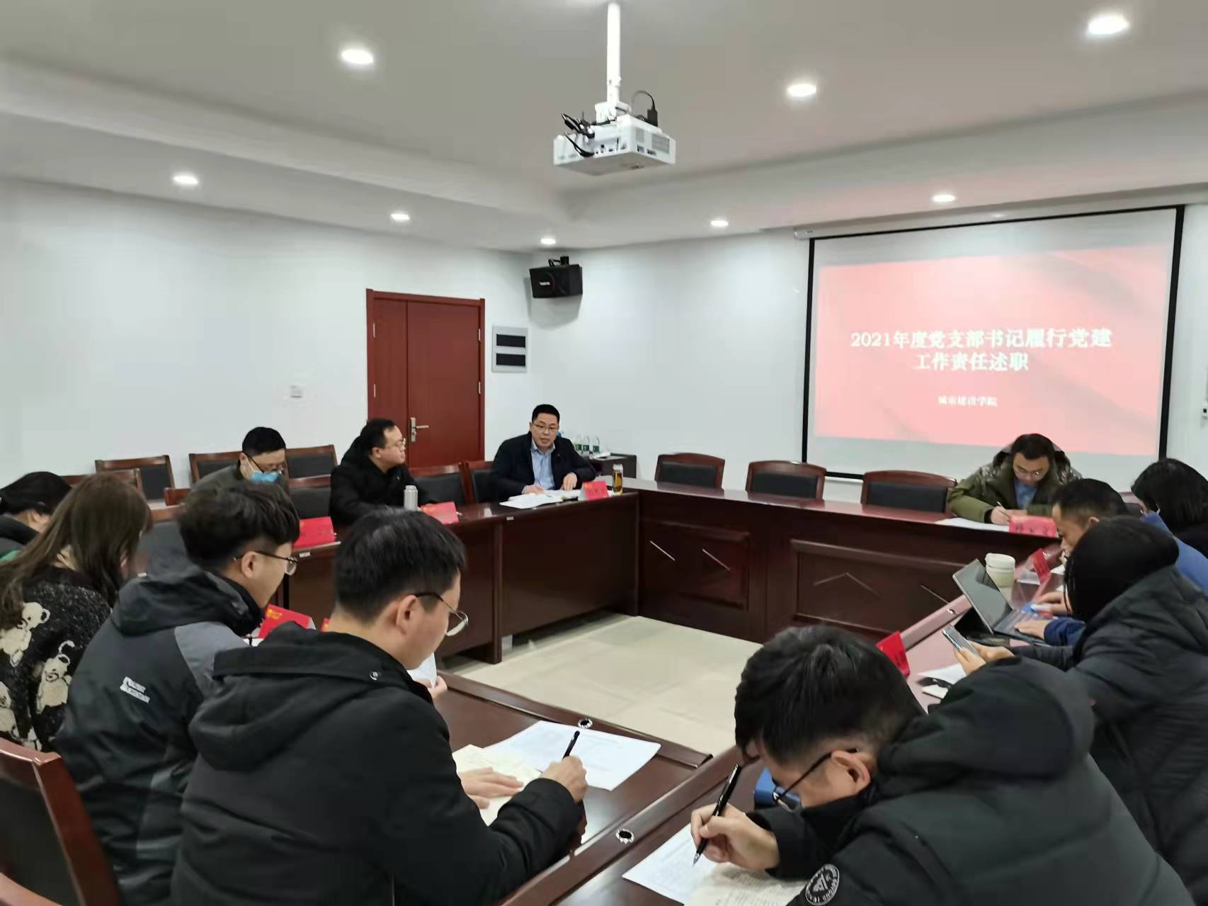 2022年1月5日下午,城市建设公司党委在天工楼302A召开党支部书记履行党建工作责任述职评议会,公司党委委员,教师、员工、行政7个党支部书记、支部委员与会。