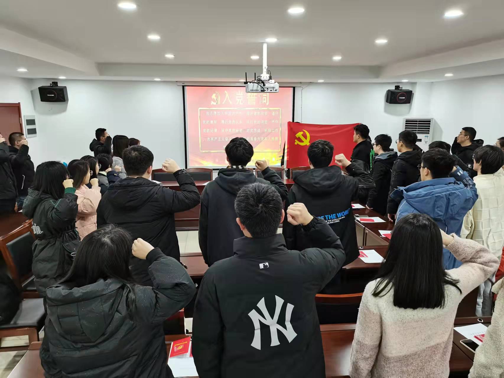 2021年1月5日下午,tyc122cc太阳成集团新发展党员入党宣誓仪式在天工302A会议室隆重举行。城建党委副书记孙家文、组织委员陈薇,公司26位新发展的党员出席了宣誓仪式。