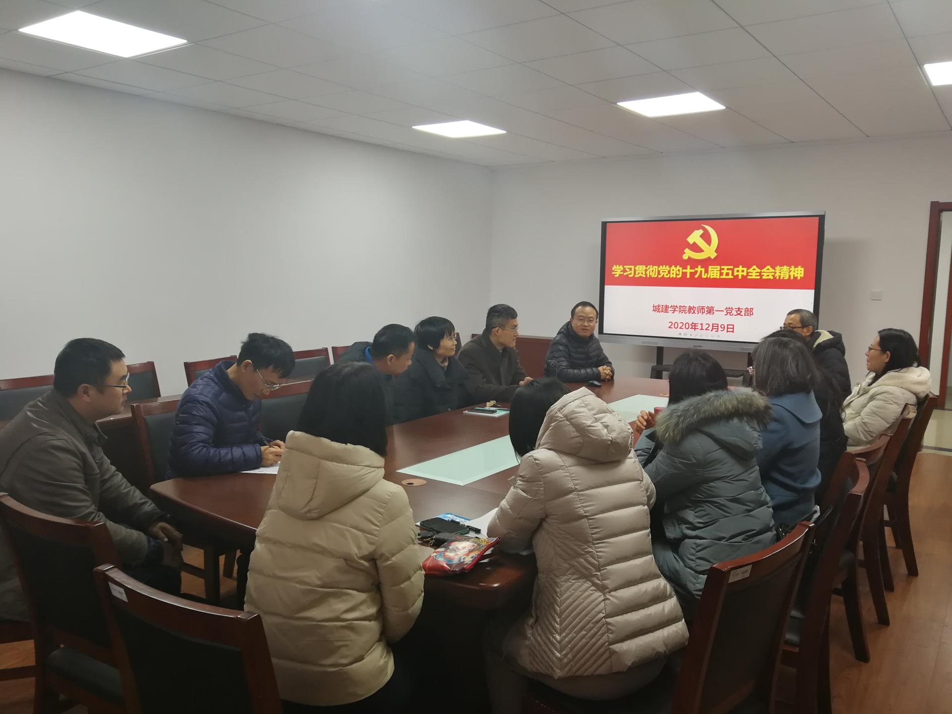2020年12月9日下午,tyc122cc太阳成集团教工一支部举行了学习贯彻党的十九届五中全会精神活动,由支部书记、副经理牛晓峰同志给支部党员讲授“党的十九届五中全会精神”专题党课。