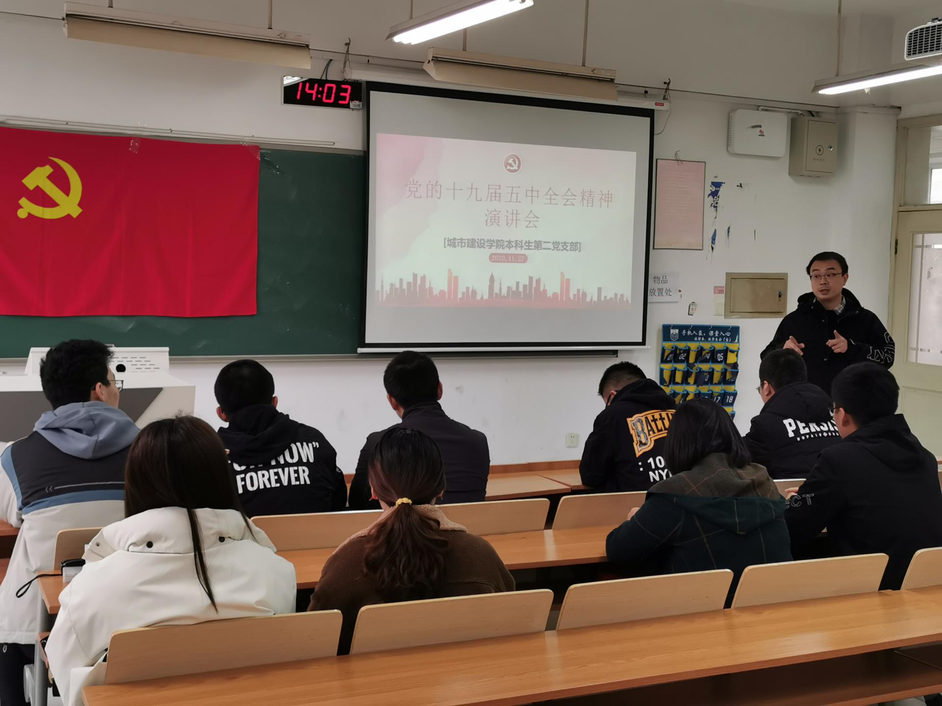 tyc122cc太阳成集团给排水专业本科生党支部于11月27日下午开展主题为“ 学十九届五中全会精神,立远大理想”的演讲活动,本次活动旨在让老员工把思想和行动统一到五中全会精神,在全面建设社会主义现代化国家新征程中贡献自己力量。本次活动全体支部党员参加。