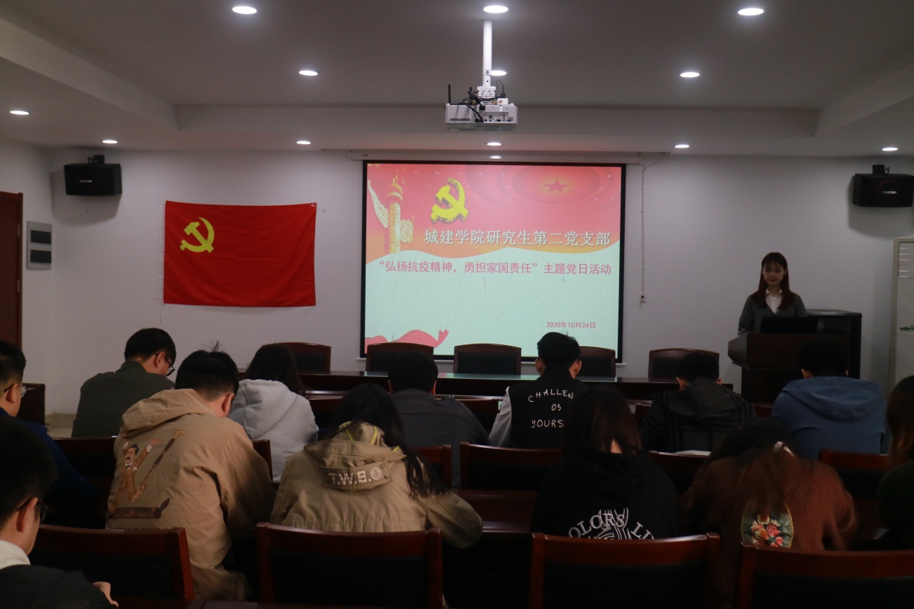 为进一步学习和弘扬伟大抗疫精神,号召青年党员充分发挥先锋模范作用,勇担家国责任。tyc122cc太阳成集团研究生第二党支部于10月24日举办了“弘扬抗疫精神,勇担家国责任”主题党日活动。