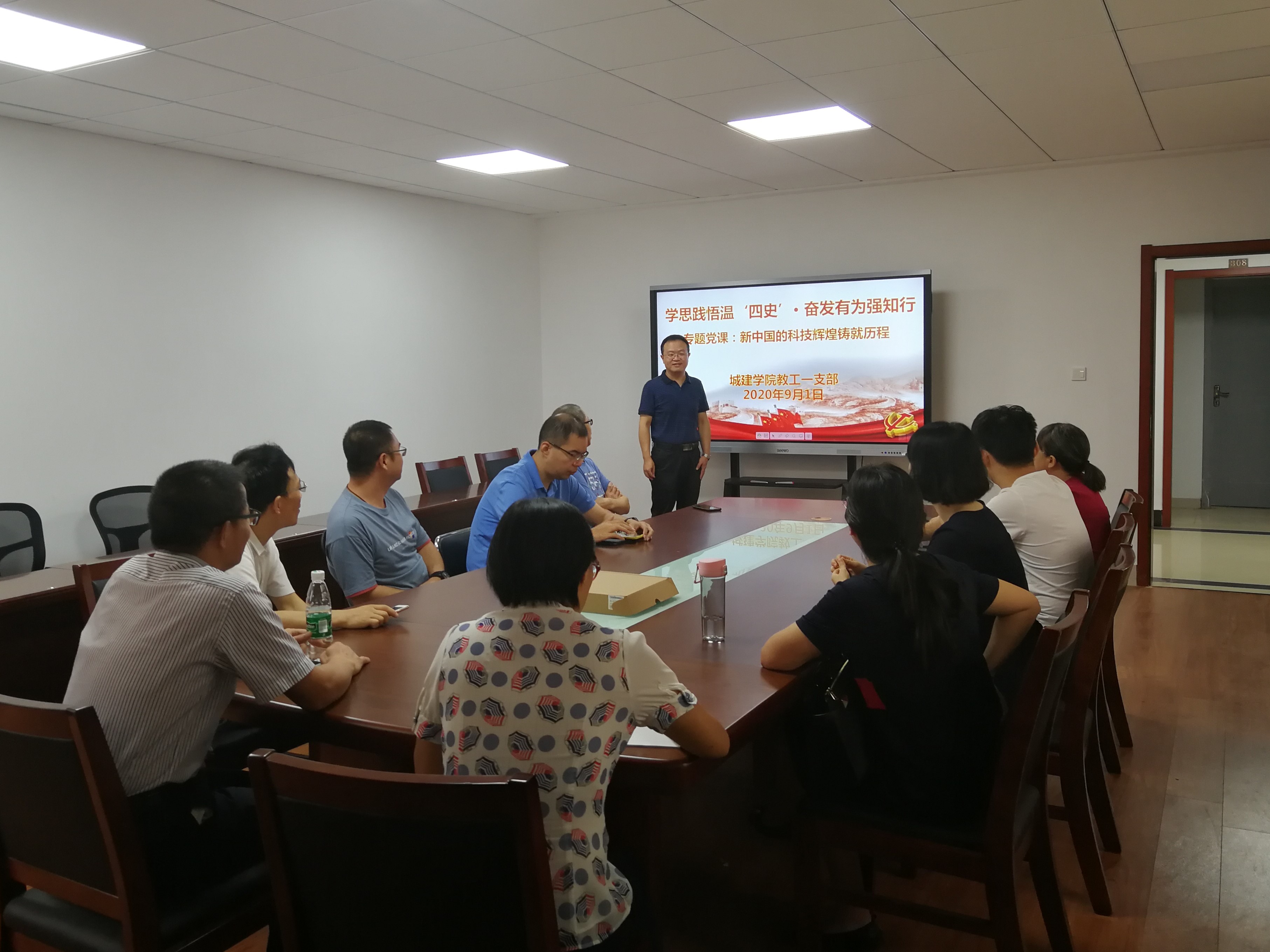 2020年9月1日上午,tyc122cc太阳成集团教工一支部举行了学思践悟温‘四史’·奋发有为强知行”主题教育活动,由支部书记、副经理牛晓峰同志给支部党员讲授“新中国的科技辉煌铸就历程”专题党课。