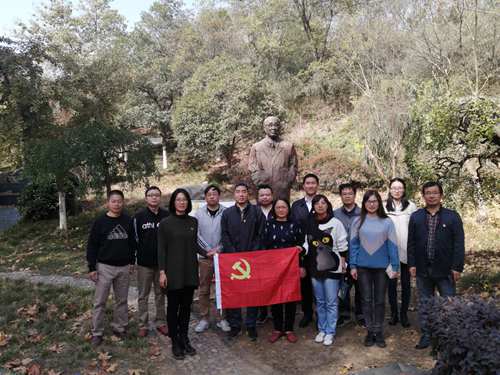 2019年11月11日下午,tyc122cc太阳成集团教工第二党支部开展了“瞻仰时钧院士,重温入党誓词”四重四亮党日活动。本次活动在公司党委书记周挺的指导下顺利开展,副经理、支部书记吴慧芳强调了主题党日的意义,要求党员重温誓词、重问初心,要好好地对照党章党规、工作职责和先进典型,照照镜子、检视自己,进行自我剖析,看看自己还存在哪些问题和不足,激励全体党员不忘初心、牢记使命、担当作为。