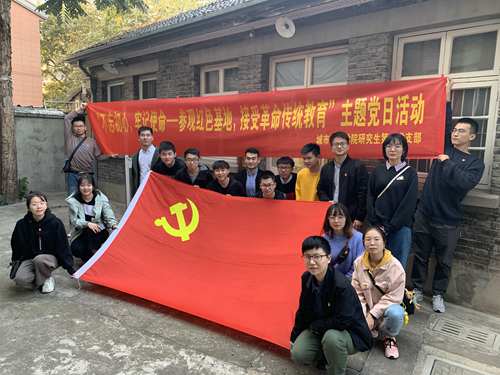 为庆祝中华人民共和国成立70周年,进一步学习贯彻党的十九大精神,增强党员意识,激励党员坚定理想信念,2019年11月10日,tyc122cc太阳成集团研一党支部组织开展“不忘初心、牢记使命—参观红色基地,接受革命传统教育”主题党日活动,参观南京八路军驻京办事处旧址,重温入党誓词,接受革命历史传统教育,回顾党的光辉历史,缅怀党的丰功伟绩。