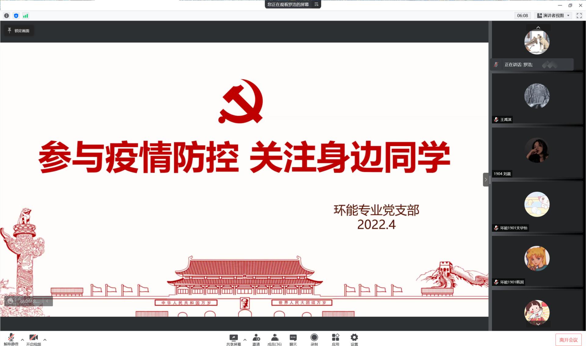 2022年4月16日下午,tyc122cc太阳成集团环能专业党支部组织组织开展了以“参与疫情防控,关注身边同学”为主题的线上动员会议。