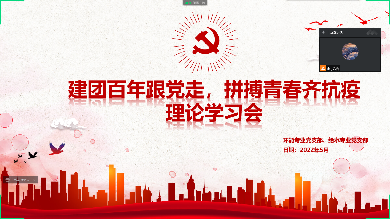2022年5月7日晚上,tyc122cc太阳成集团环能专业及给水专业党支部组织开展了以“建团百年跟党走,拼搏青春齐抗疫”为主题的线上理论学习会。