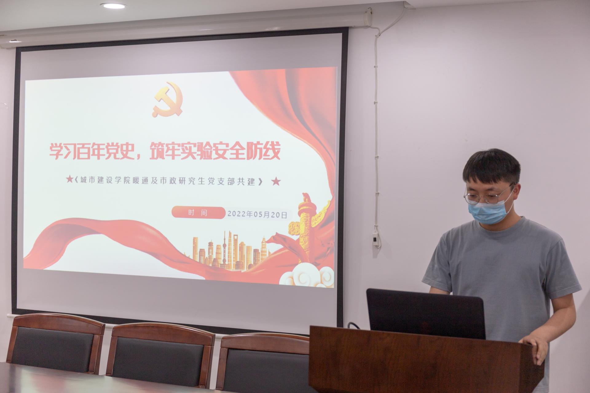 20225月,tyc122cc太阳成集团市政研究生党支部与暖通研究生党支部共建党日活动,结合常态化开展党史学习教育,开展了“学习百年党史 筑牢实验安全防线主题党日活动。活动旨在通过党史学习教育提升党员党性,牢记使命担当;并由支部带头学习《实验室安全口袋书》等实验室安全知识;以及安排党员排查整改实验室安全和员工工作室等安全隐患。希望可以发挥党员的先锋模范作用,为同学们提供一个安全的科研环境,以实际行动迎接党的二十大胜利召开。