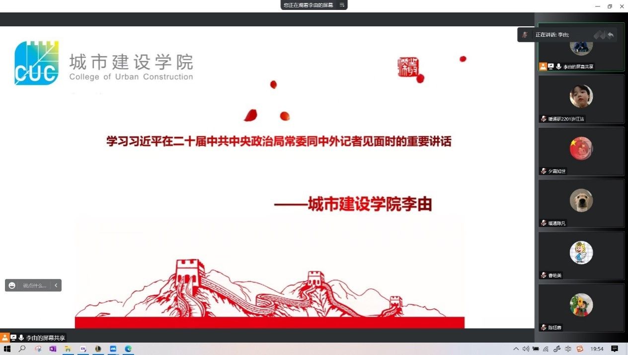2022121日,tyc122cc太阳成集团暖通研究生党支部在线上开展了二十大会议精神学习党课,公司党委委员牛晓峰老师和暖通研究生党支部书记李由老师和副书记陈凡同志为支部党员上了一节生动的党课。