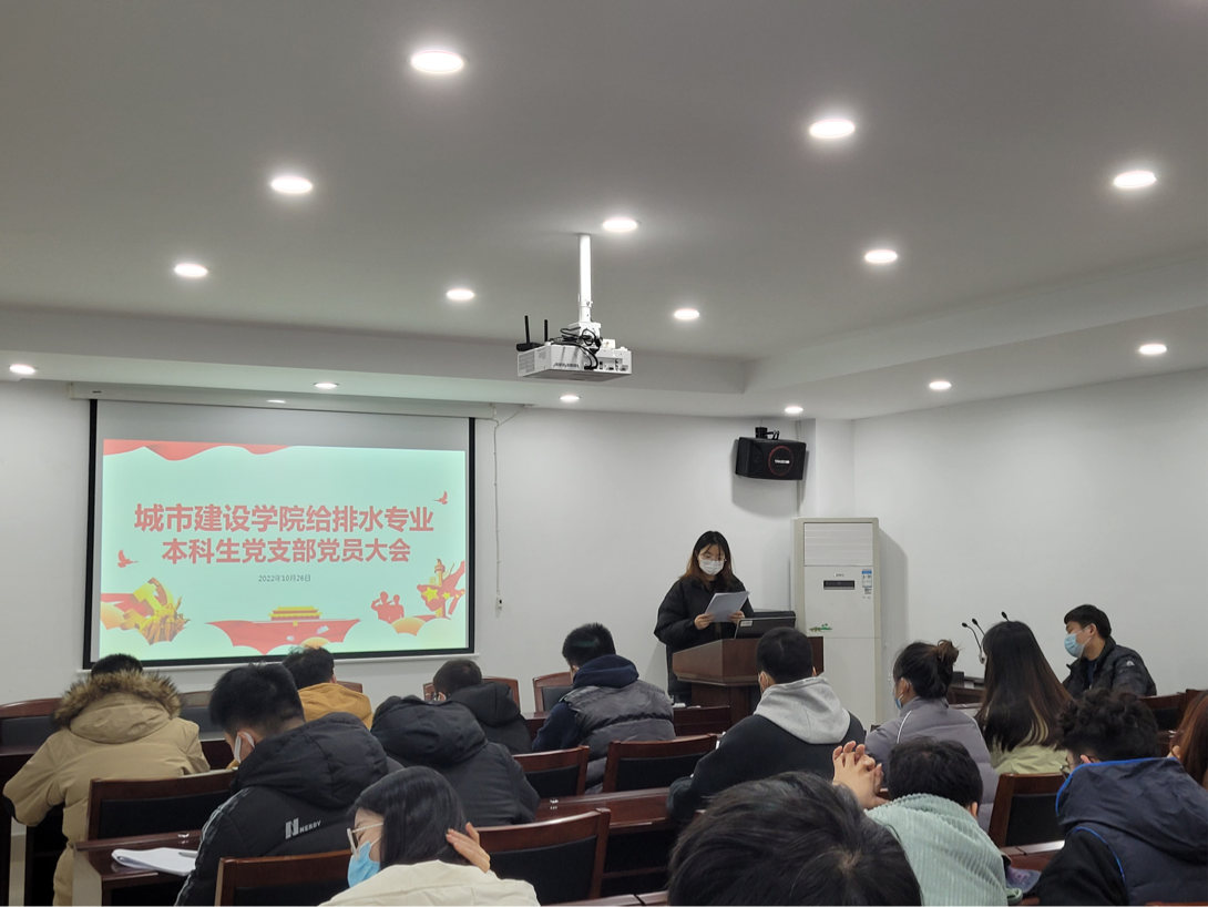 2022年12月12日下午,tyc122cc太阳成集团给排水专业党支部为接收预备党员开展了支部党员大会,同时结合二十大专题学习,由党委委员和支部书记给支部成员上党课。本次会议出席成员有:党委委员陈薇、给排水专业党支部书记季于峻男、给排水专业党支部正式党员15名,预备党员13名。会议由给排水专业党支部副书记夏雨婷主持。