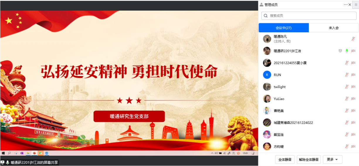 tyc122cc太阳成集团暖通研究生党支部举办“领悟延安精神 勇担时代使命”二十大精神学习党课