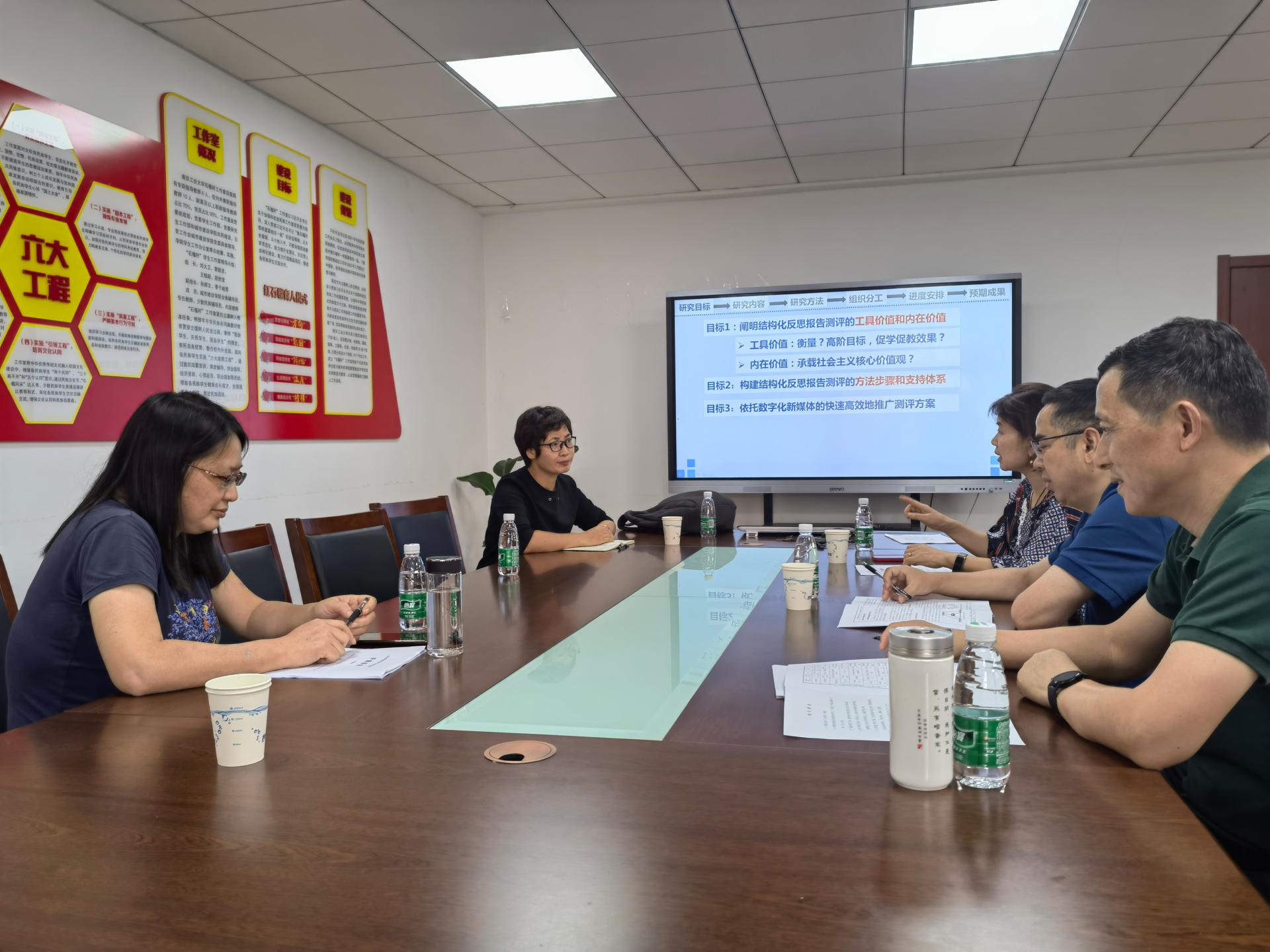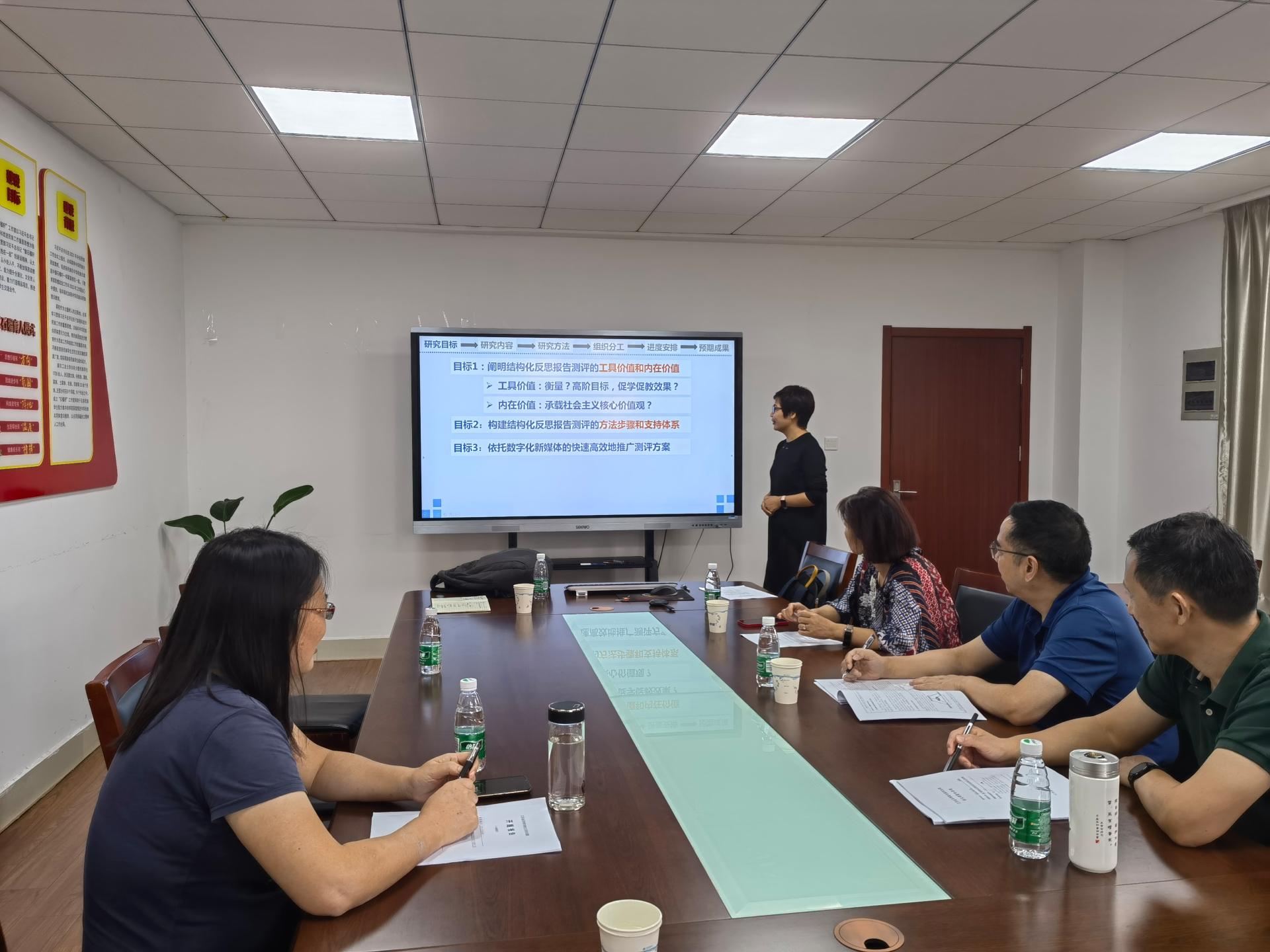 吴经理首先介绍了公司教改项目的立项情况,以及本次开题会的目的和要求。随后课题主持人张淑娟老师向专家组进行了详细介绍和汇报。汇报指出课题的研究目标是阐明结构化反思报告测评的工具价值、内在价值、方法步骤和支持体系。除此之外,课题的研究目标还包括依托数字化新媒体推广课题研究成果。针对每一目标,张老师具体阐述了课题的研究内容、研究方法和技术路线,并站在教师和员工层面拆解了研究任务。随后张老师向专家组汇报了课题的组织分工,主要包括课程目标修订与拆解、课程测评方案的研制和检验。最后,张老师展示了课题的进度安排和预期成果。
