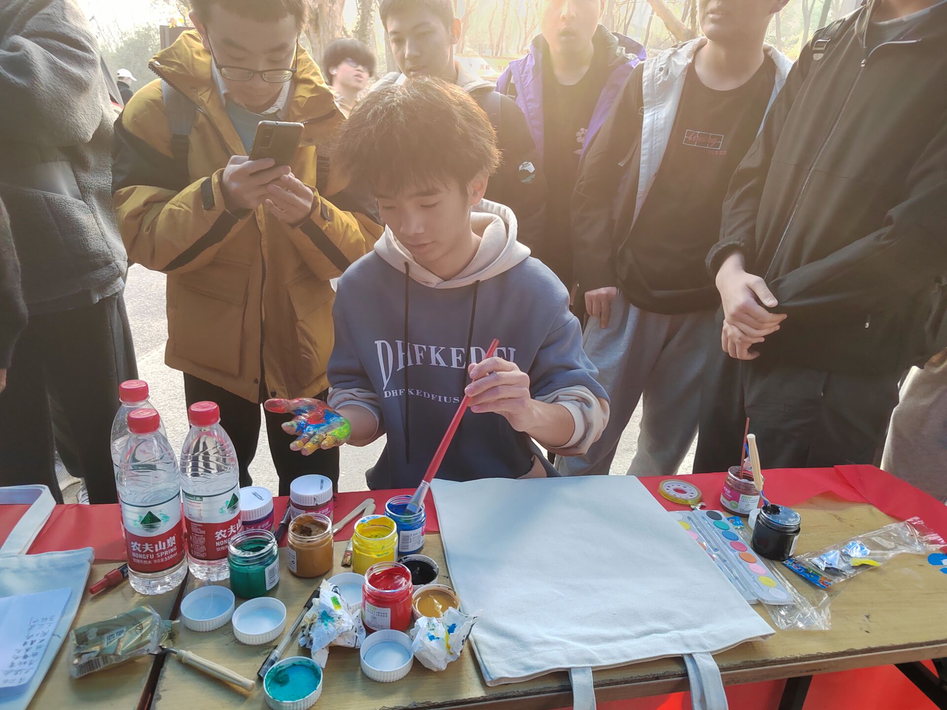 活动伊始,同学们参与主动性高,积极学习环保知识,在现场进行环保知识竞答,根据自己的兴趣爱好进行环保绘画。活动过程中,同学们个个大显身手,在环保袋上绘制了对未来绿色生活的美好期望。