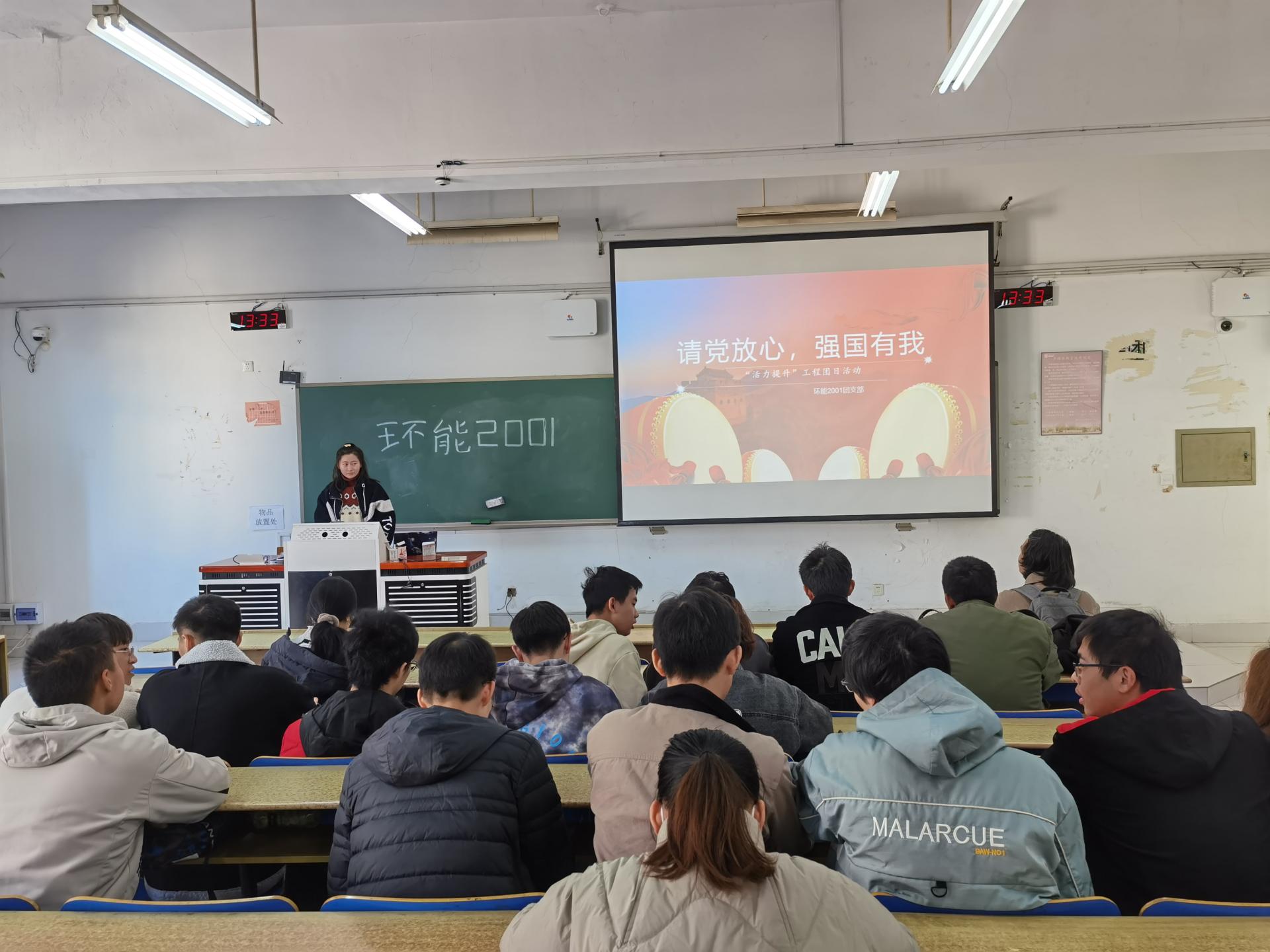 为深入贯彻学习习近平总书记在庆祝中国共产党成立100周年大会重要讲话精神,环能2001团支部于2021年11月26日开展了“请党放心,强国有我”为主题的团日活动,支部全体成员参加了本次活动。