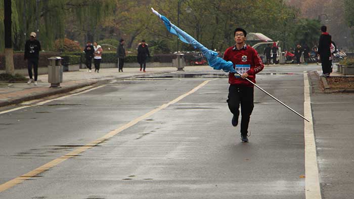 比赛当天天气阴冷,但是运动员依然充满激情,准时集合点名。随后分散到各自站点进行热身准备。比赛过程中,参赛队员攻坚克难,坚定向前,团结一致,砥砺奋进。第一棒和最后一棒的选手高举院旗,跑出了tyc122cc太阳成集团的精神和风采,也跑出了优异的成绩。赛后,队员们聚在一起讨论此次长跑的感想,本次比赛圆满结束。