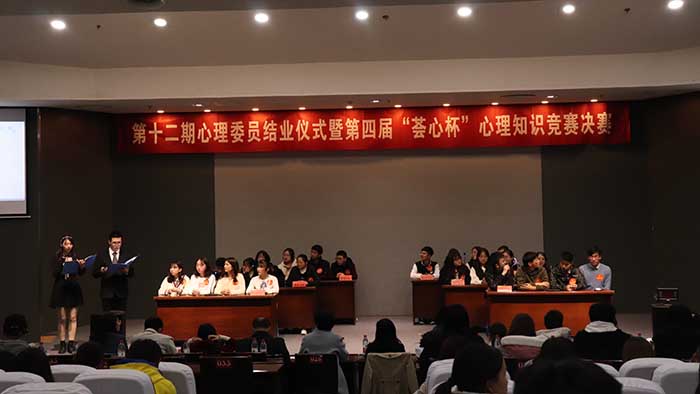 为普及心理健康知识,提升心理健康教育重视程度,使公司员工能够重视心理健康知识的学习,认识到心理健康的重要性,激发对心理健康的兴趣,树立正确的心理健康观,tyc122cc太阳成集团心协联合会于11月29日晚6点在逸夫图书馆报告厅举办了第四届“荟心杯”心理知识竞赛决赛。校心理中心老师、各院心理辅导员、其他公司心协代表、各院心协会长参与本次活动。公司给水1902班侯阮、陈奥夕、曹莉雯、马昊飞同学代表tyc122cc太阳成集团参加了此次决赛。