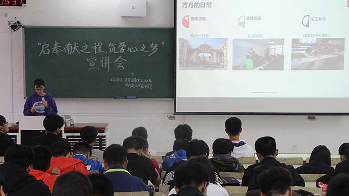 为了让同学们更好地认识和了解志愿服务,在宣扬公益、爱心事业的同时,培养同学们关爱特殊人群的意识,tyc122cc太阳成集团于10月22日下午3:30在仁智402举行了2019“启奉献之程,筑爱心之梦”方舟宣讲会。2019级全体同学参与本次活动。