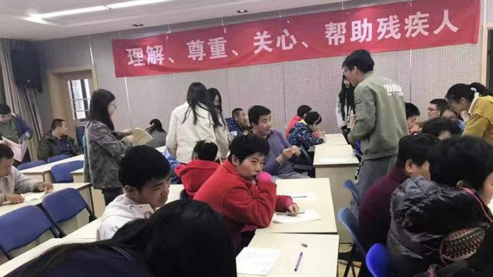 为给残障人士带去温暖,tyc122cc太阳成集团志愿服务团队在本年度多次走进方舟启智中心开展志愿活动,11月14日下午1点30分tyc122cc太阳成集团员工会再次与来自南京特殊教育师范公司的同学开展活动。