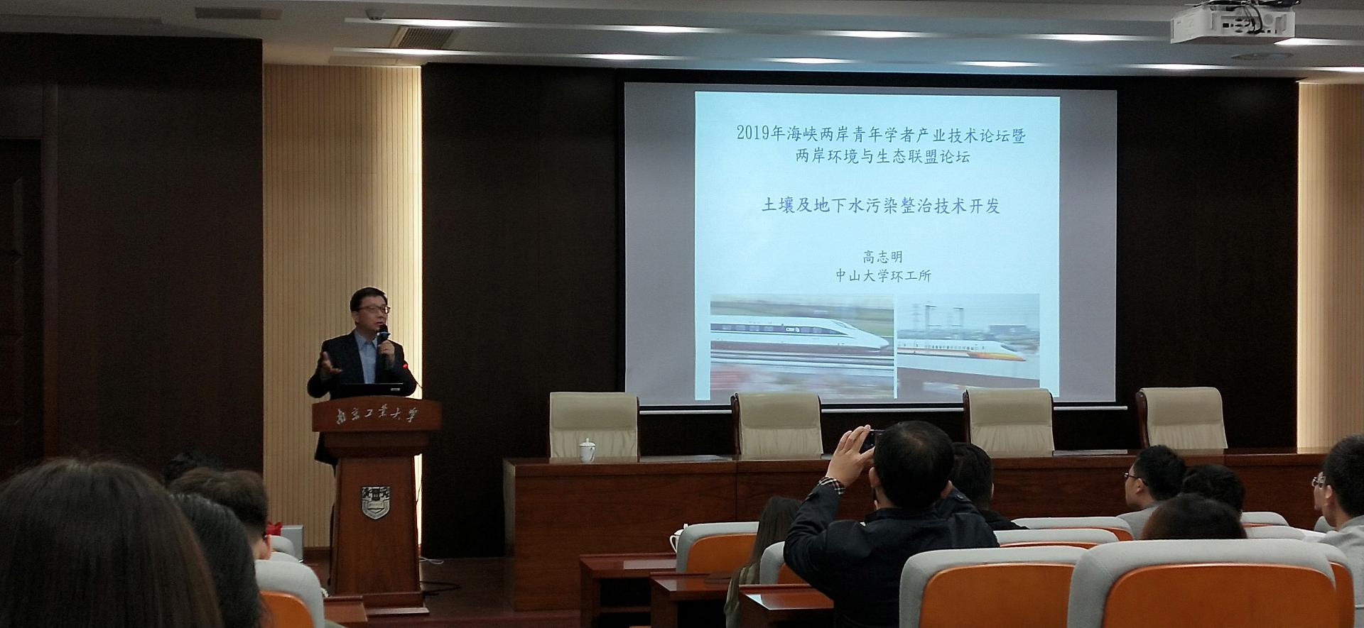 10月22日下午,台湾中山大学环境工程研究所所长高志明教授应邀来到tyc122cc太阳成集团,以《土壤及地下水污染整治技术开发》为主题进行了学术报告。此次报告会在公司江浦校区土木学科楼二楼会议室举行,由市政工程系主任尤朝阳老师主持,tyc122cc太阳成集团的老师、研究生和本科生积极参加了此次活动。