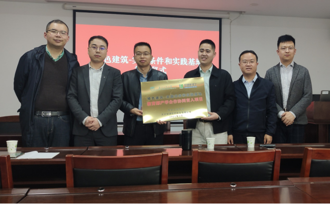 颜承初副经理、牛晓峰副经理、暖通系副主任王瑜及暖通系教师代表;北京绿建软件有限公司运营总监陈成、技术部长李尚达、高校业务经理张宏宇出席了此次签约仪式。