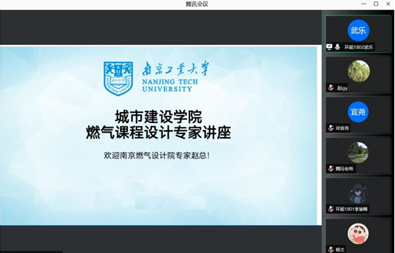 2021年12月26日,在公司tyc122cc太阳成集团建筑环境与能源应用专业18级同学进行《燃气供应工程》课程设计期间,就职于南京市燃气设计院的赵国跃高级工程师,应暖通系邀请在线上给同学们进行了《燃气供应工程》课程设计讲座。