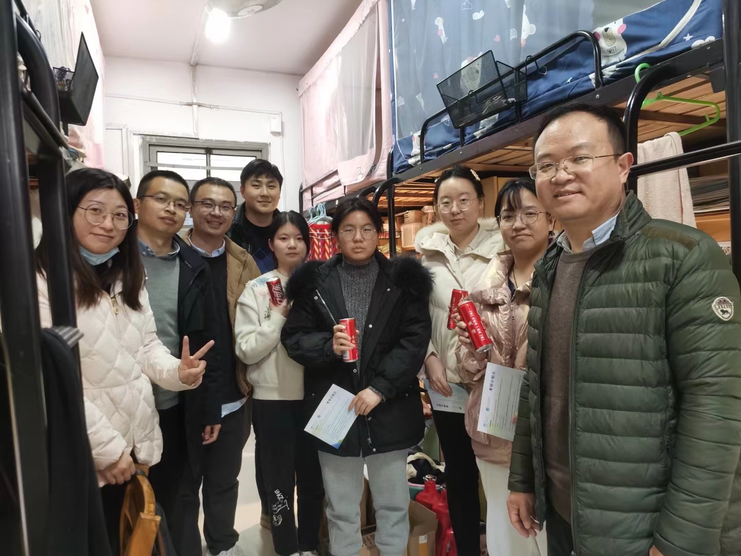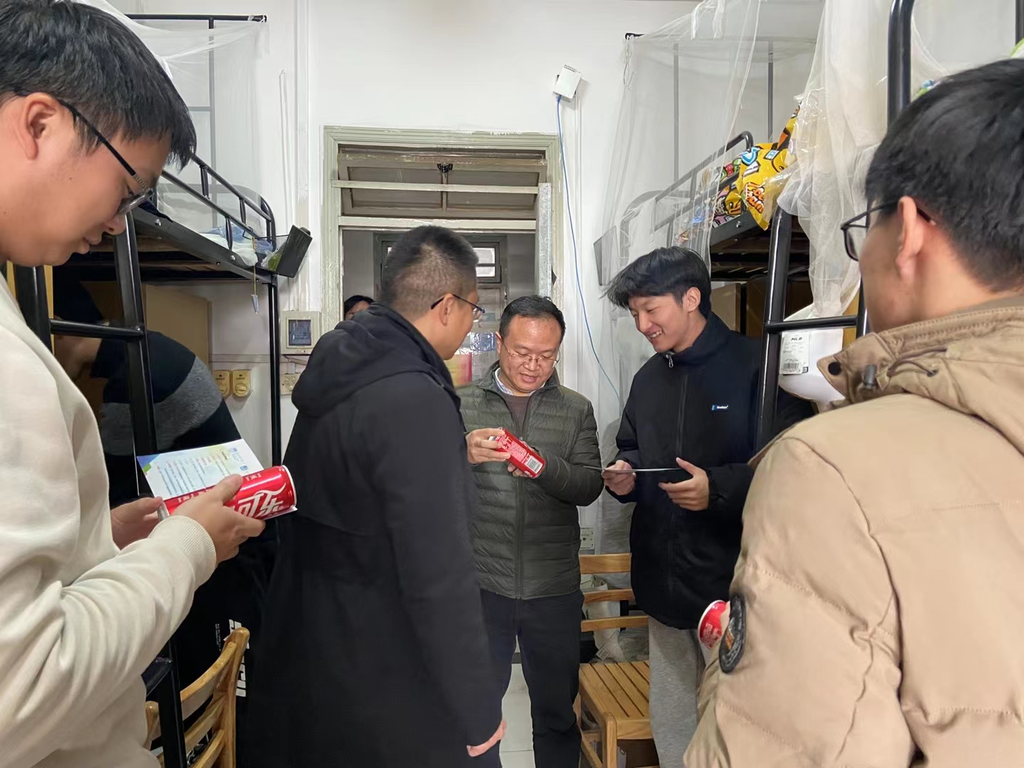 正值寒风凛冽的初冬时节,全国硕士研究生入学考试在即,为了帮助考研学子缓解备考压力,坚定考研信心,积极冲刺迎考,2021年12月23日下午,tyc122cc太阳成集团副经理颜承初、副经理牛晓峰,公司党委副书记孙家文、学办副主任季于峻男、院团委副书记田静等一行深入考研员工宿舍,为努力拼搏、即将进入“考研战场”的城建学子送上冬日的鼓励与温暖。