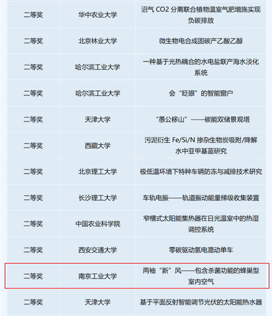 本次总决赛的评委分别来自上海交通大学、西安交通大学、南开大学、天津大学、吉林大学、兰州理工大学、北京林业大学、哈尔滨工业大学。评委们根据作品选题、方案设计、结构设计、答辩演示情况,以及作品的新颖性、创新性、实用性进行综合评审。经过评选,8支队伍获得一等奖,12支队伍获得二等奖,15支队伍获得三等奖,16支队伍获得优秀奖。经过不懈努力,公司王瑜老师指导的本科生科技类作品《两袖“新”风----包含杀菌功能的蜂巢型室内空气交替工作除湿系统》(作者:刘金琳、钟子龙、周舟、买帅星)荣获大赛二等奖。
