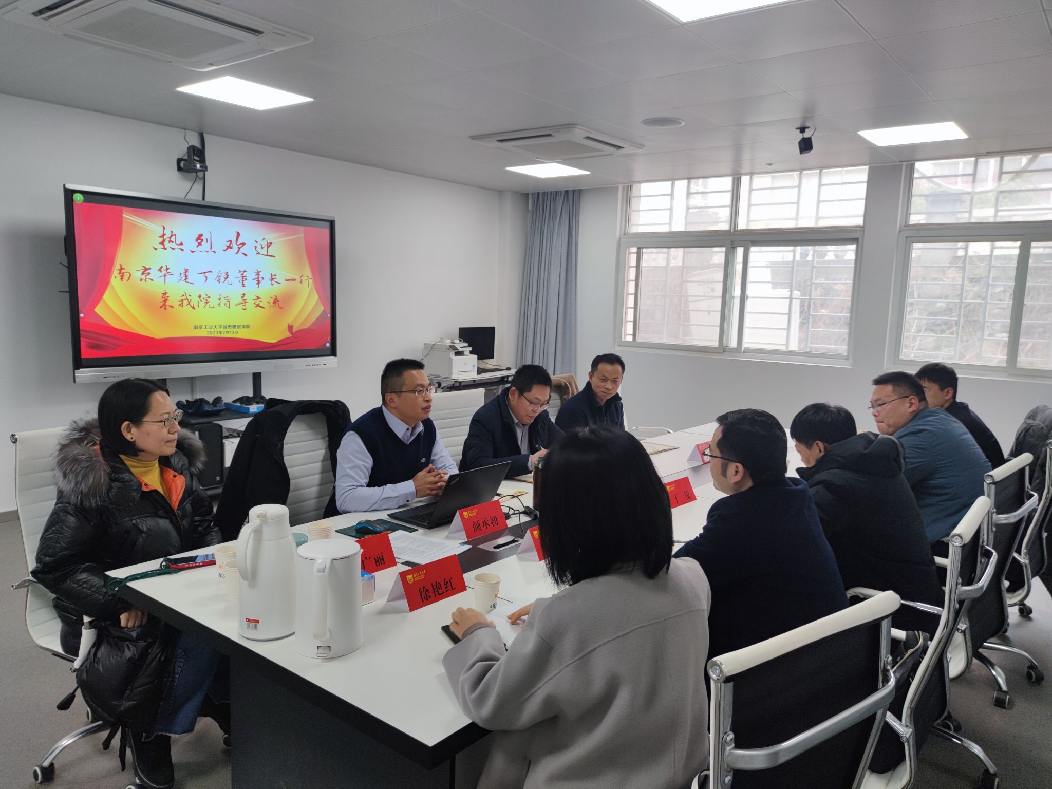 2023年2月13日下午,中建安装集团旗下特色专业化公司——南京华建检测技术有限公司党委书记、董事长丁锐,总工程师黄德海,党群工作部部长李诚益,中建安装工程研究院副经理徐艳红,研发工程师黄庆与城建公司书记段然堂,公司经理颜承初,暖通教师代表在天工楼318进行技术合作交流,交流会由经理颜承初主持。