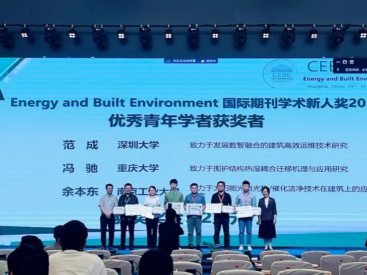 在大会闭幕式上,举行了Energy and Built Environment(EBE)国际期刊学术新人奖2023的颁奖典礼。该奖项旨在发现和鼓励在能源与人工环境领域崭露头角的学术新秀,每届评选3位国内外“优秀青年学者”。评选过程由第三届华人能源与人工环境国际学术会议组委会负责,颁奖嘉宾分别是西安交通大学何雅玲院士和香港理工大学严晋跃院士。经过60位学术委员会专家及行业专家的首轮评审,以及会议期间7位专家的现场答辩评审,余本东老师以“太阳能光电光热/催化洁净综合利用技术”方面的杰出研究工作脱颖而出,荣获“优秀青年学者”称号。这也是公司青年教师首次获得该项荣誉。