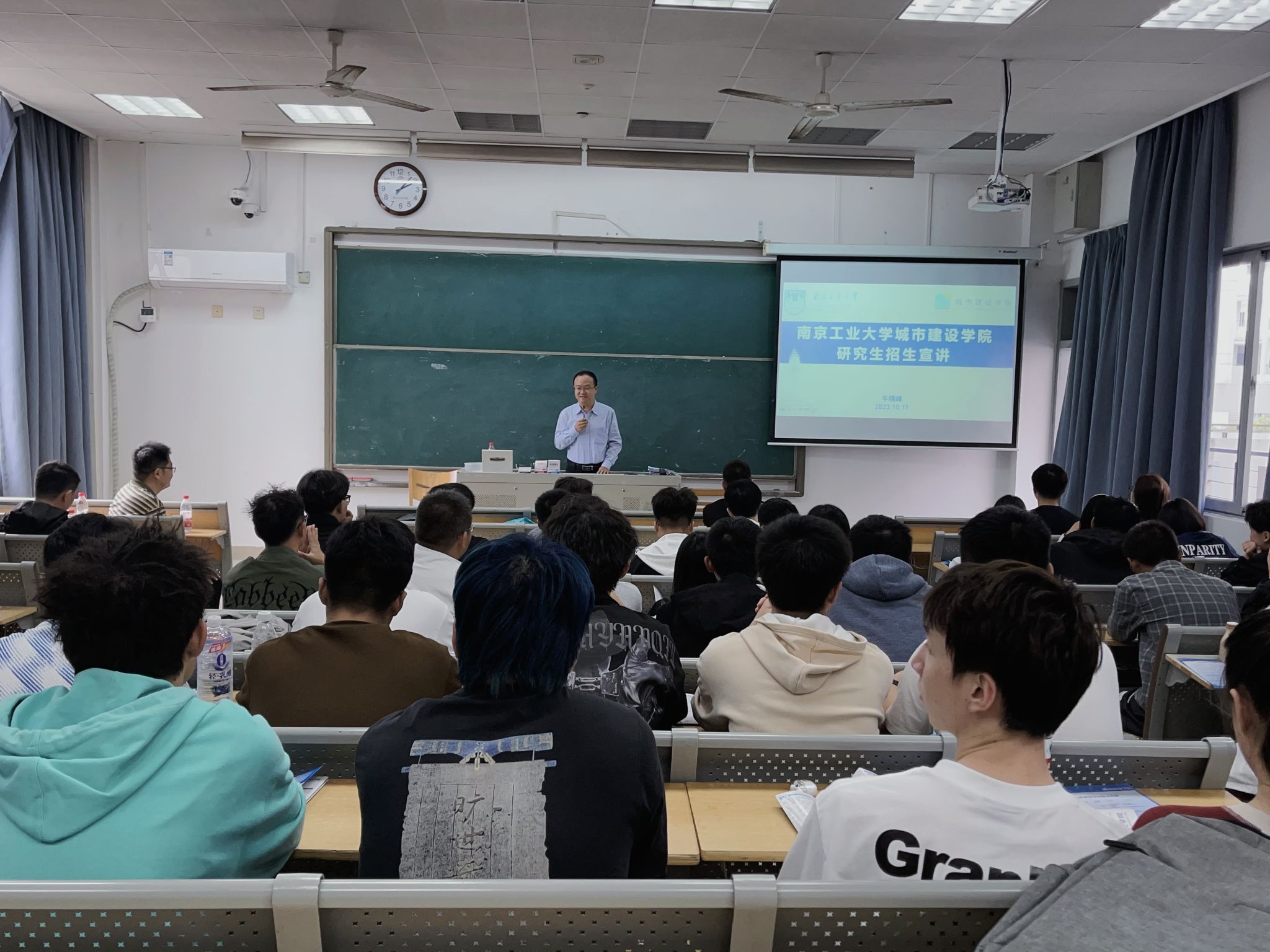 为加大公司研究生招生宣传力度、提高公司研究生招生生源质量,公司于2023年10月11日赴南京工程公司能源与动力公司进行研究生招生专场宣讲。本次宣讲活动由牛晓峰副经理带队,研究生秘书唐晔楠老师及本科毕业于南京工程公司的公司在读研究生陈凡、陈俊文参与。南京工程公司能源与动力公司副书记朱正林,建环系主任蔡宁、副主任文先太及建环专业百余名同学参加了宣讲会。