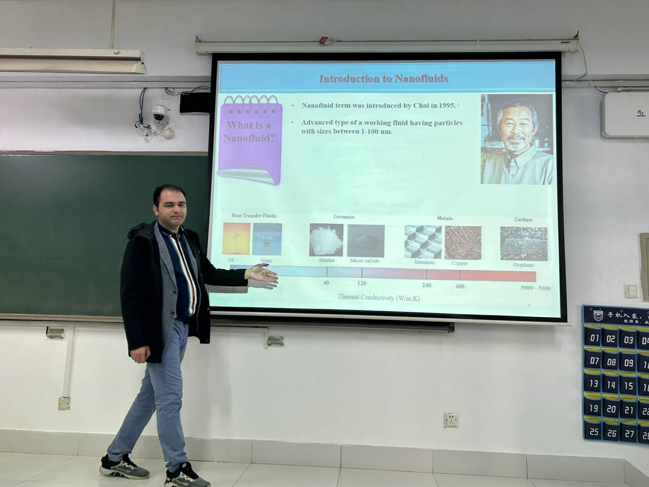 11月16日,公司伊朗籍特聘教授Omid Mahian为2023级暖通研究生进行线下授课,主要授课内容为太阳能系统中的纳米流体强化换热。