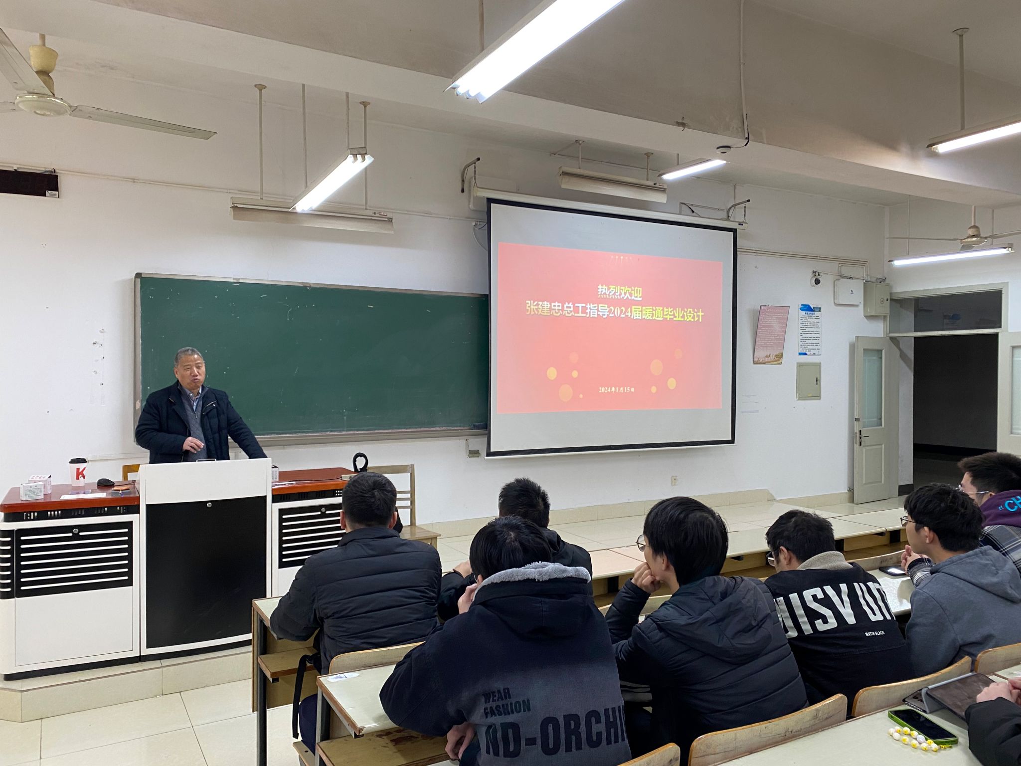 1月15日,为提升2024届毕业生的毕业设计水平,暖通系邀请南京长江都市建筑设计股份有限公司机电总工程师张建忠总工来校给同学们开展了“仁恒南京江心洲文旅度假区项目机电一体化设计”的专题讲座。