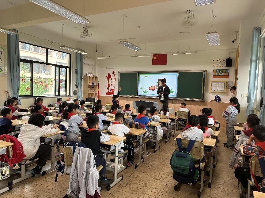 志愿者们面向二(10)班的孩子们进行了低碳环保的知识宣讲。他们用一个个生动的小故事向孩子们介绍各种能源的来源,并通过抢答环节让孩子们融入到活跃的课堂氛围中,提高孩子们对能源的认知。之后,志愿者们又通过简单的趣味实验,让孩子们亲身体验了生活中保温的科学现象,进一步激发孩子们对实现节能的兴趣和向往。实操阶段中,在志愿者哥哥姐姐们的帮助下,孩子们都顺利完成了自己的保温杯制作。